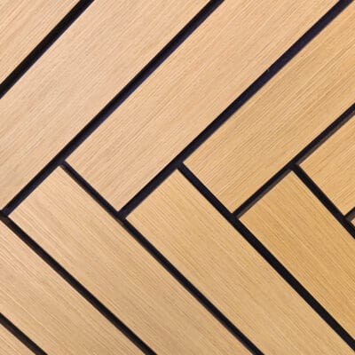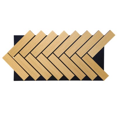 Breng een vleugje elegantie en rust in uw ruimte met onze Akoestische Panelen in Visgraatpatroon. Deze panelen zijn ontworpen om de akoestiek te verbeteren en tegelijkertijd een stijlvolle en verfijnde uitstraling te bieden. Verkrijgbaar in de kleuren walnoot, eiken, zilver eiken en zwart eiken, passen ze perfect in elk interieur.