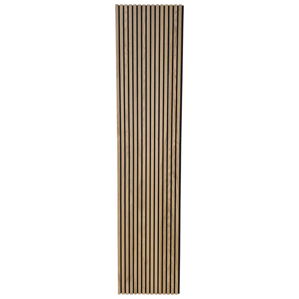 Akupanel ‘Natuurlijk Eiken’ is een hoogwaardig akoestisch paneel dat is ontworpen om de akoestiek in elke ruimte te verbeteren. Het paneel is gemaakt van MDF met een natuurlijk eiken fineer, wat zorgt voor een natuurlijke uitstraling. Het extra geluidsabsorberende akoestische vilt in de kleur zwart, dat brandvertragend is, helpt bij het verminderen van nagalm en het verbeteren van de geluidskwaliteit. Het paneel is naadloos te koppelen en heeft een afmeting van 270x60cm, waardoor het eenvoudig te installeren is. Akupanel ‘Natuurlijk Eiken’ is een product van het merk WoodzZz®.