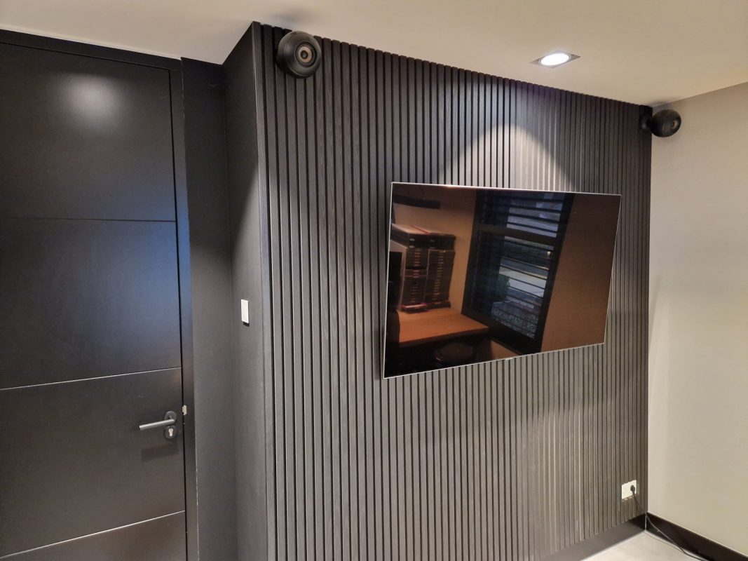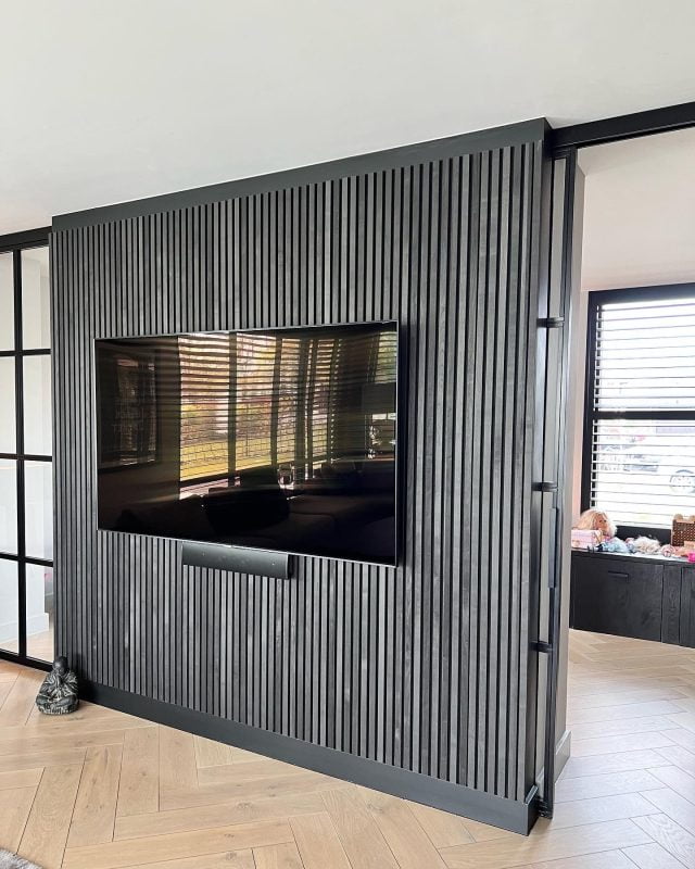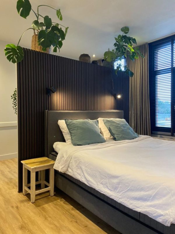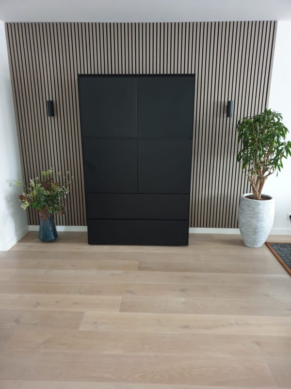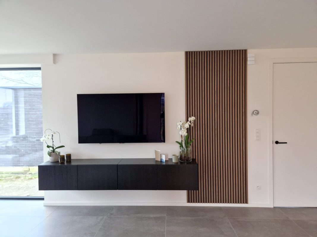 Akupanels in de kleur ‘Walnoot’ prachtig gemonteerd tegen de wand