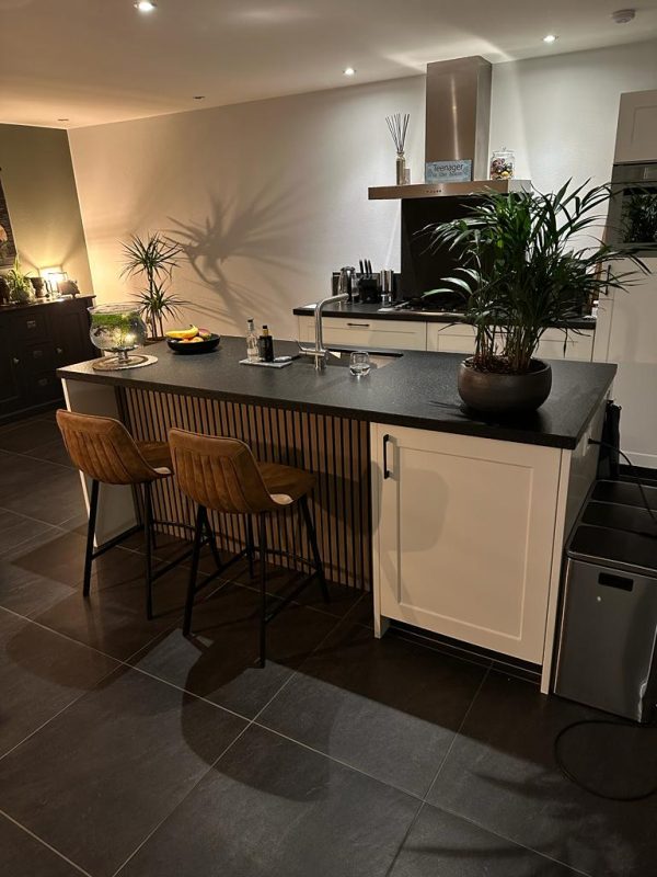 Akupanels in de kleur ‘Walnoot’ toegepast in woonkamer